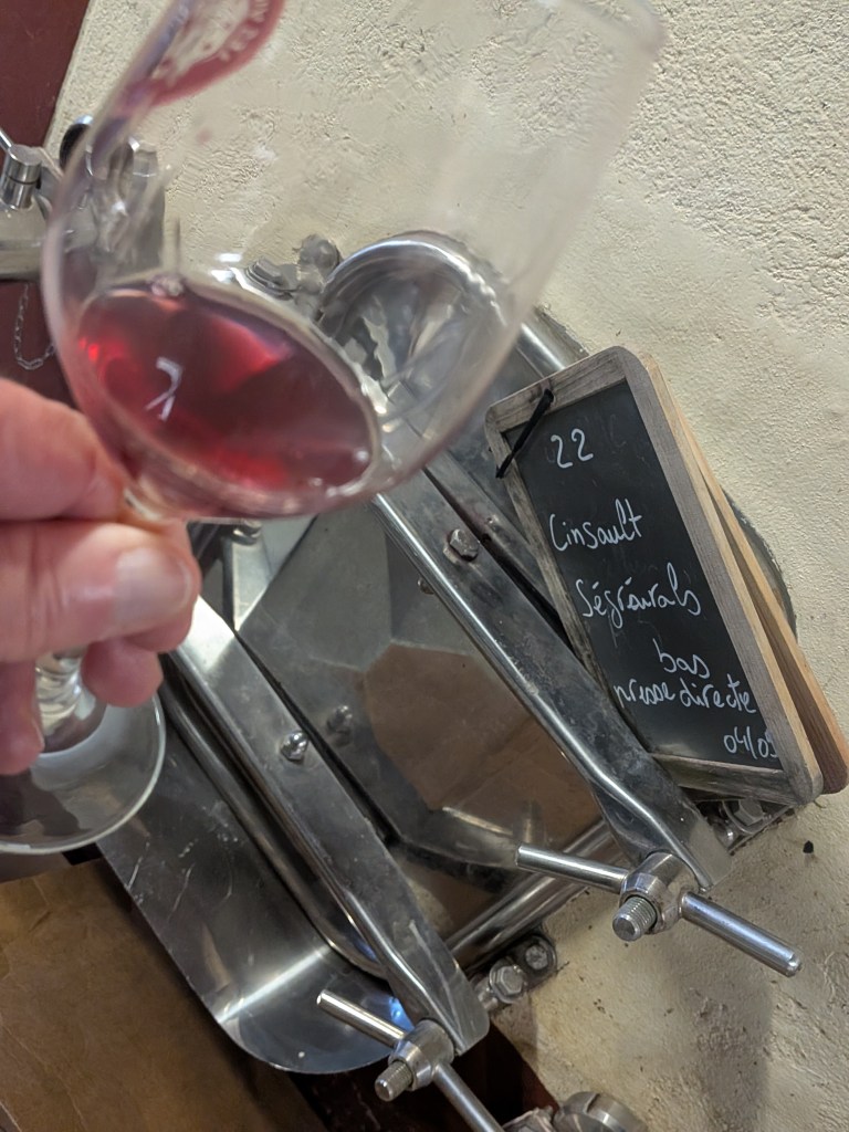 The following day Jeff invited me over to taste through the wines in tank from 2025 as he was expecting a visit from the owners of New York City wine bar Horse With No Name. Cam and Christine with their 3 month old son duly arrived. They stock a good few of Jeff’s wines and, following his recent visit to the city, interest is high in Mas Coutelou there (and in this blog I am happy to report).