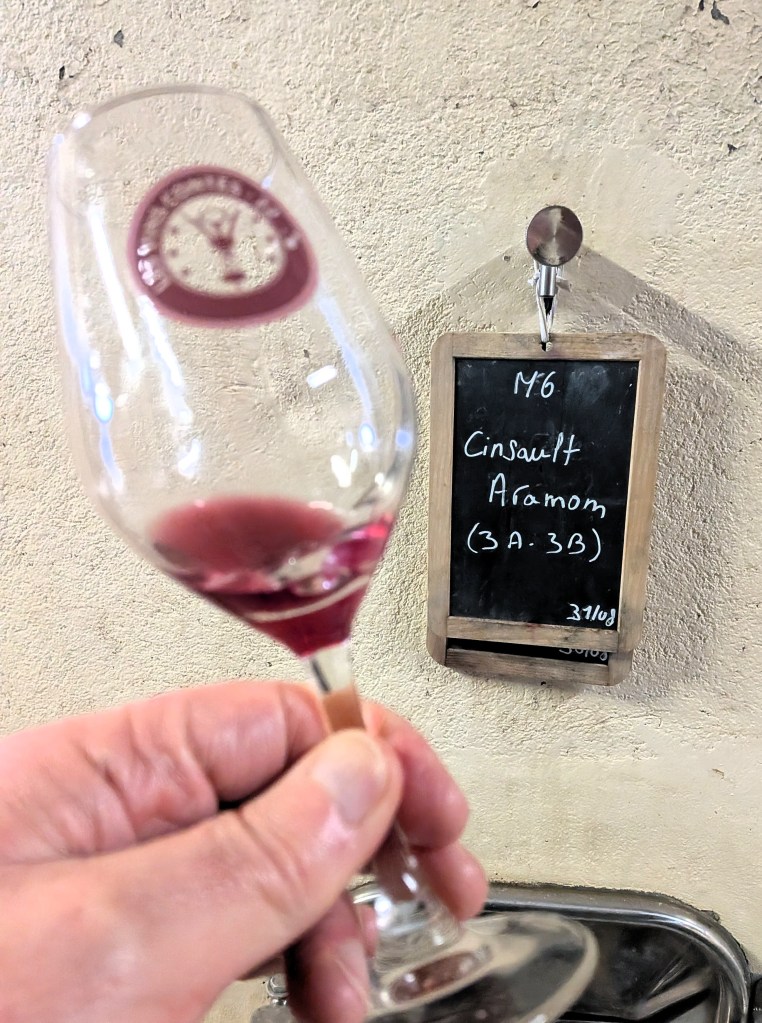 Down to the ground floor and red wines. My favourite was the wine which will be Ploutelou with its Cinsault and especially Aramon Noir. It is so juicy and fruit driven that you have to like it, a mix of delicious Beaujolais and more serious Jura Ploussard. The Grenache was also on song and, to a little bit of Jeff’s frustration, the Carignan. This plot, the Rec D’Oulette vineyard, produces some great wines, such as Flambadou 2016, but these are so often followed by vintages where the vines suffer from mildew or other problems requiring a lot of work to help them. Jeff had decided to grub up this vineyard (as I mentioned in the Carte Des Voeux report) but so good was the wine from last year that he has given it another year’s grace in the hope that a corner has been turned. Fingers crossed.