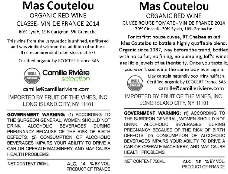 Thanks for the clarification on the latter point. Coutelou wines are sold there as organic, the labels were old ones but the name has certainly changed. It is now Vins et Spiritueux Coutelou. I simply didn’t have an image of the newer labels.