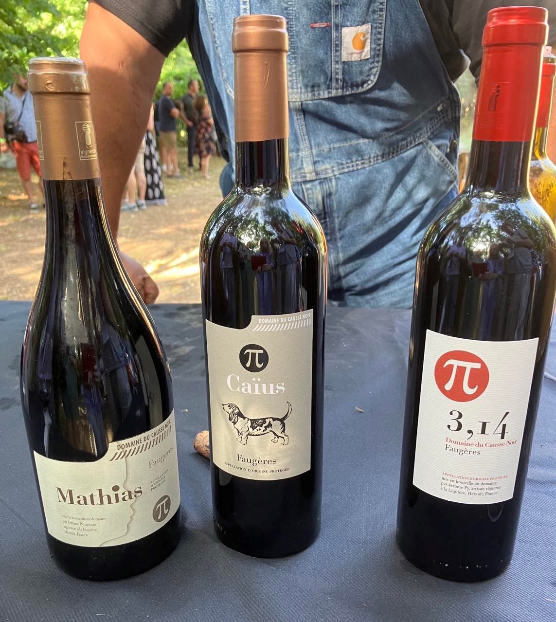 Another good friend in the area is another Jérôme, this time Jérôme Py of Domaine Causse Noir, midway between Cabrerolles and Caussiniojouls, which means high altitude and healthy winds. Jérôme started his domaine in 2011 and makes no compromises with his big, powerful wines, given plenty of time to mature and reach their peak, look at the vintages he was showing here. Certified organic, his harvests often starts when most are nearly finished lower down in the region. He is a gentle giant and a lovely man, I want his wines to be good and, happily, they always are. 3,14 2017 is a wordplay on his surname of course. It is a lovely red blending Carignan, Syrah, Grenache and Mourvedre full of red and black fruit flavours and yet fresh and easy to drink. Caius 2016 blends Syrah, Grenache and Mourvedre and has barrel age to produce a deep, elegant and balanced wine with good fruit and tannin. Matthias 16 with more Mourvedre and then Syrah and Grenache feels lighter at first but the wine is very deep and concentrated, the Mourvedre brings real power but is balanced, fine winemaking skills in evidence to control the power.
