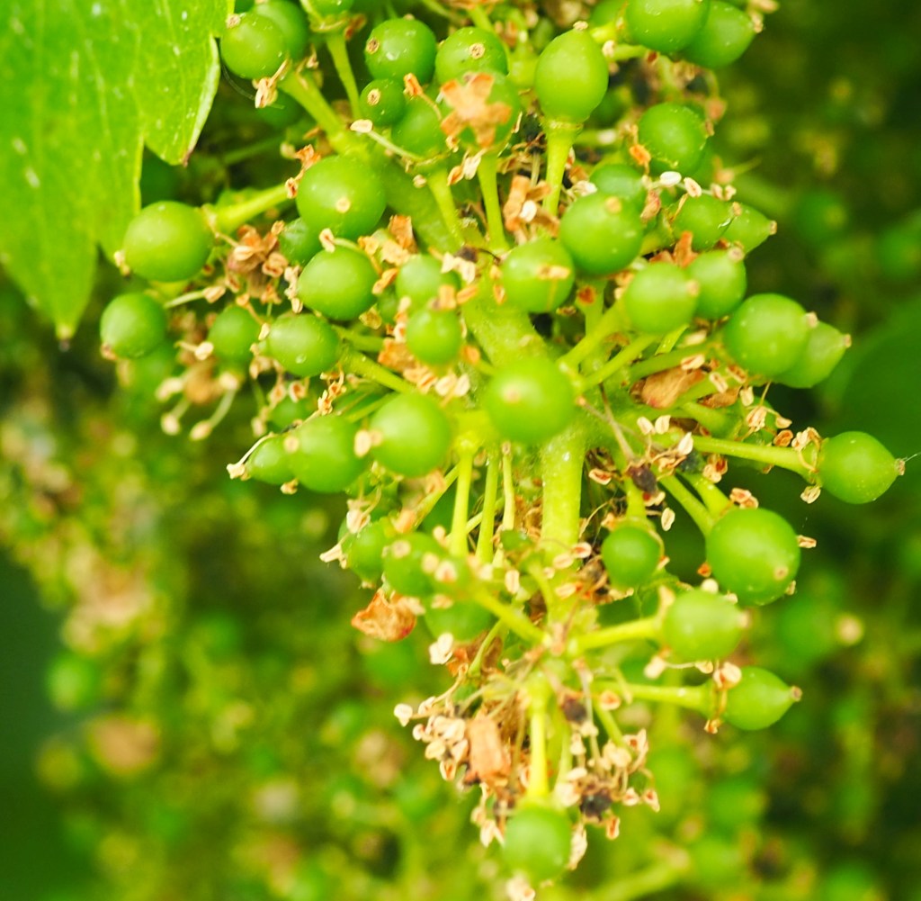 Meanwhile in the month I was there the grapes began to swell and grow. Compare some from the beginning of June to the beginning of July.