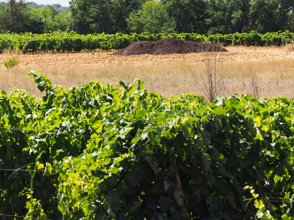 In the post Vineyard Views I explained how Jeff was expanding Peilhan vineyard including a drinking hole for wild animals and birds. He has also bought a parcel next to the Vigne Haute Syrah in La Garrigue vineyard. This will, I understand, be planted with more Syrah on the north facing slope. The land has been cleared and compost has been delivered ready to use. Jeff is concentrating on a few vineyards such as Peilhan rather than having his work spread over a large number, more efficient altogether.