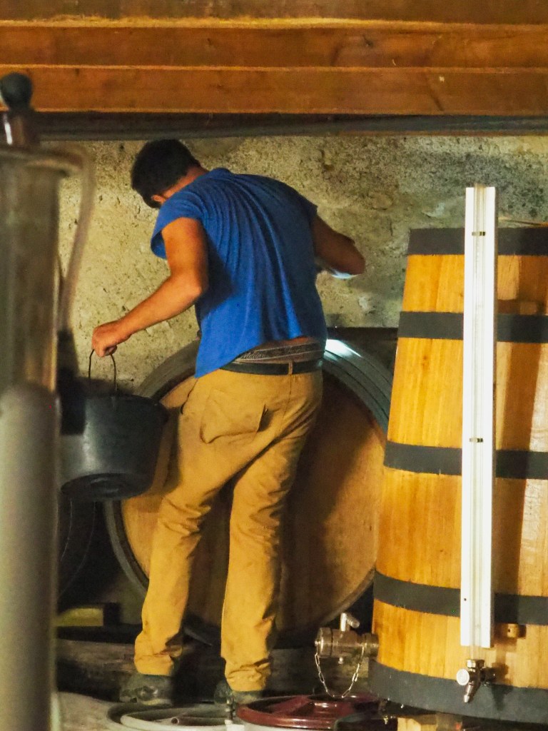 Bottling the Coutelou 21s was completed with some of the bigger cuvées such as Classe as well as the one which I am keen to acquire, the new Flower Power. The tanks are, therefore, empty and await this year’s harvest. Matteo and Jeff were busy rearranging steel tanks and topping up barrels when I called just before leaving. Meanwhile Jeff took delivery of a new concrete egg which involved a lot of machinery and manoeuvring to get in place next to the previous one. A two tonnes vessel to be placed on the upper floor was a complicated operation, Flora took a video which you can see here.