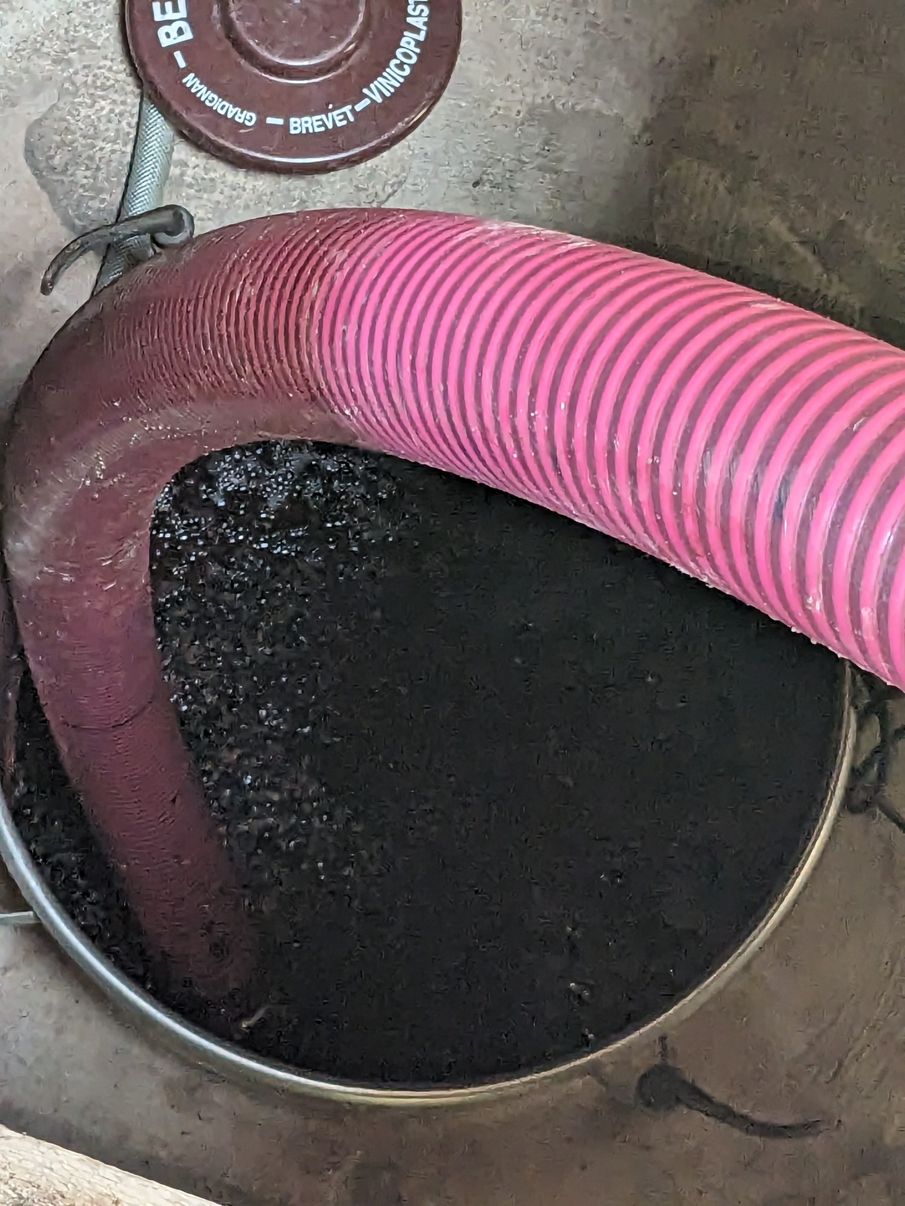 Friday and, following on from the last post, more Syrah. This time it was Syrah from Segrairals at the eastern side of the village which had benefited from rain on June 29th. Consequently, the grapes were fuller and, happily, disease free. Good quantities, good quality. There’s not much to add, it was a long day, still hot, not so stifling as previous days and we worked hard and steadily. It was good to be able to keep an eye on how full the tank was getting so that it didn’t overflow, another tank was needed.