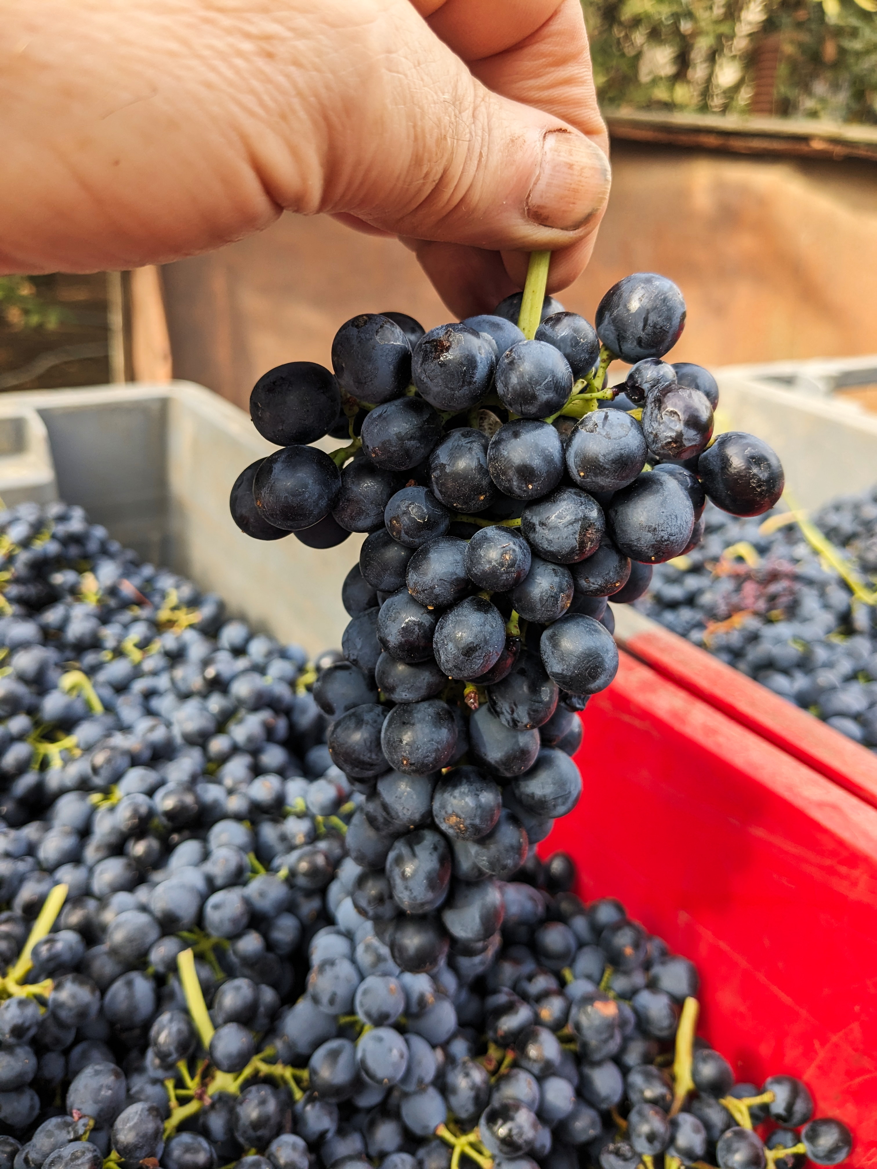 The drought of late 2022 and 2023 was certainly the biggest influence on this year’s vendanges. It meant having to pick some grapes early to relieve vines which were literally diverting their last reserves into grapes as part of the reproductive cycle of the plant albeit at risk to their own health and future. It meant that Syrah, one of the cornerstones of Jeff’s vineyards, struggled badly, the grapes were small, the skins and flesh containing far less juice than normal.