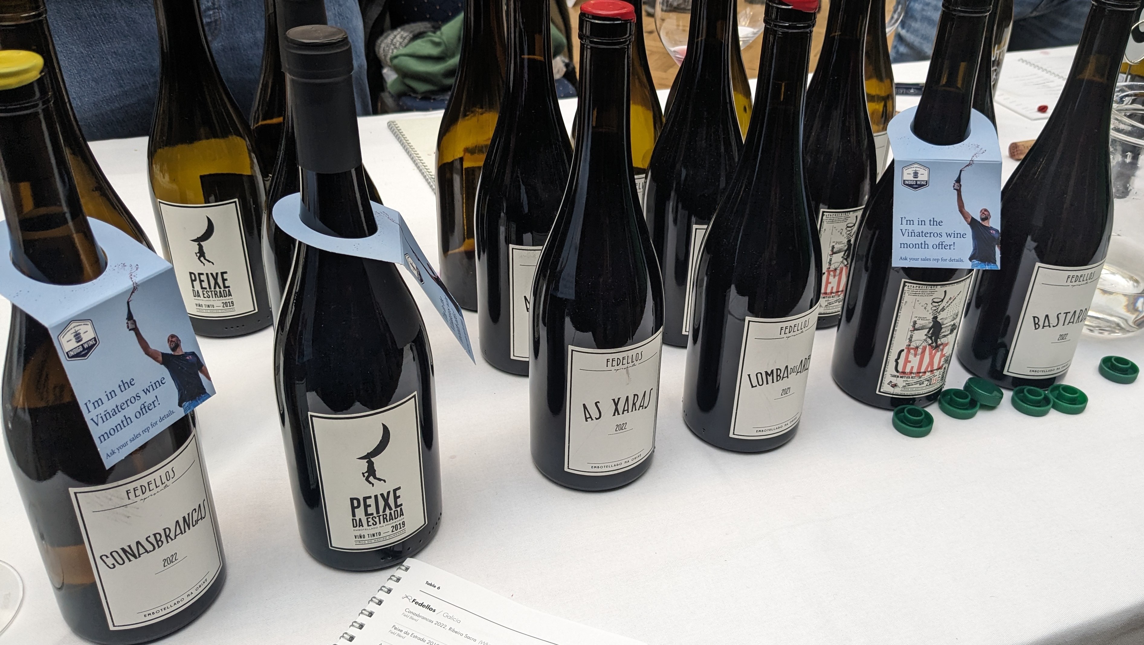 Of the Galician producers my favourite on the day was Fedellos in the Ribeira Sacra area north of Portugal. Conosbrancos 22 is a field blend of white grapes with lovely salinity. The reds were consistently drinkable, I enjoyed the field blend Lomba dos Ares 21 with a good balance of fruit and power and also Eixe 19 made from Merenzoo, Albarello and Negreda grapes (all new to me), the red fruits were full and singing.