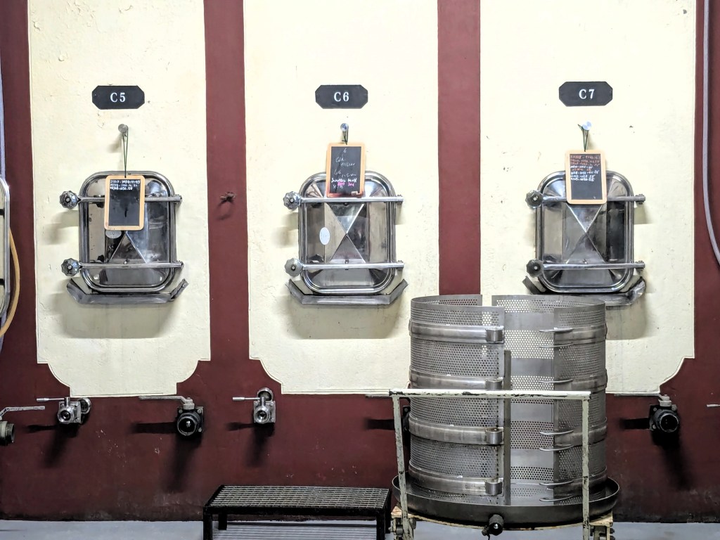 By good fortune we managed to meet up with winemaker Brendon Keys, proprietor with his wife Kirstyn, of BK Wines based in Uraidla. Brendon kindly invited us up to his winery and new cellar door, so new that James hadn’t been before, and he led us through an extensive tasting from barrels, eggs and bottles. The wines were consistently very good right across the range. Brendon has somewhat bucked the trend I mentioned above by becoming less interventionist and the results were energetic, clean wines full of fruit, character and complexity.