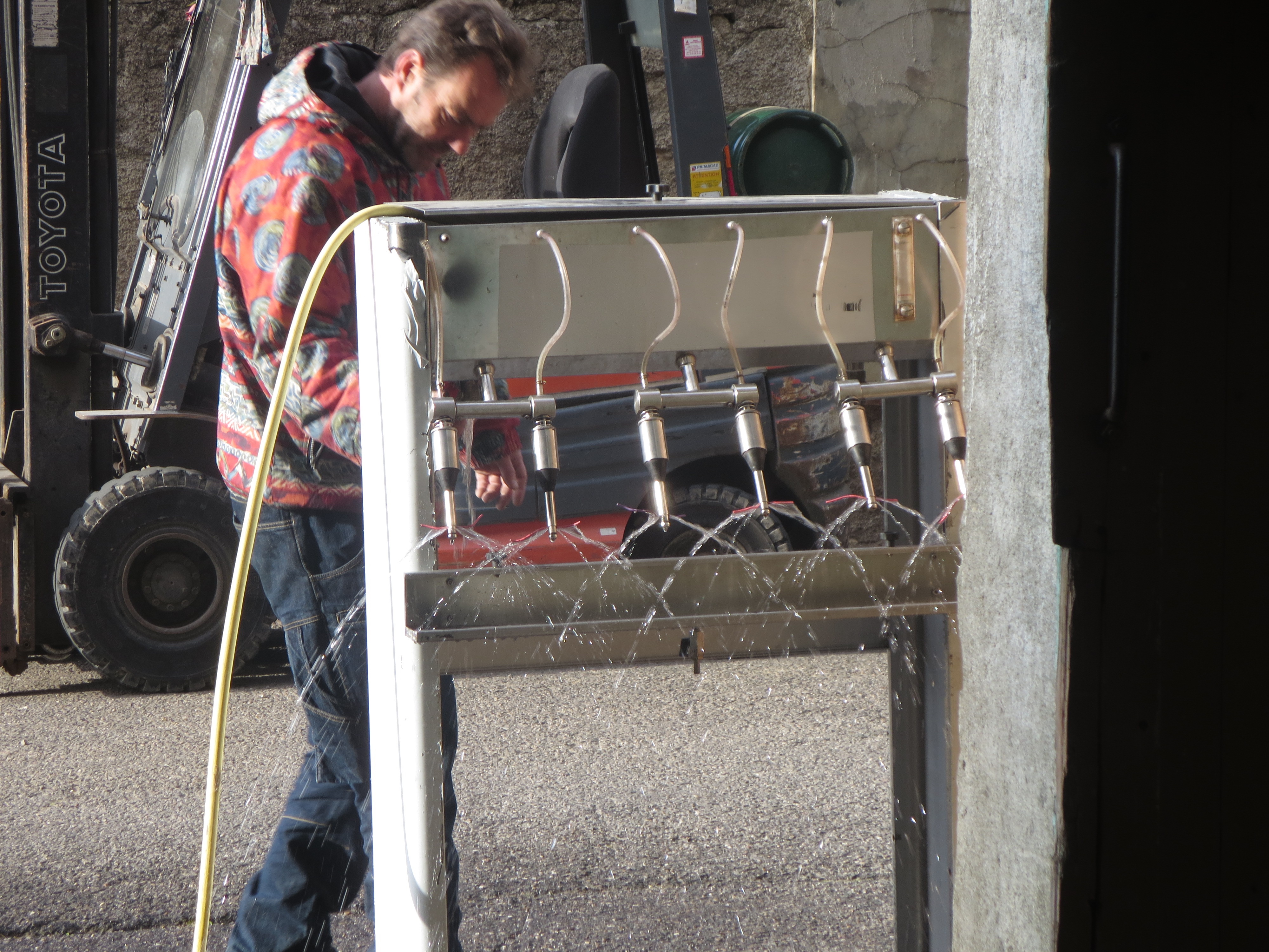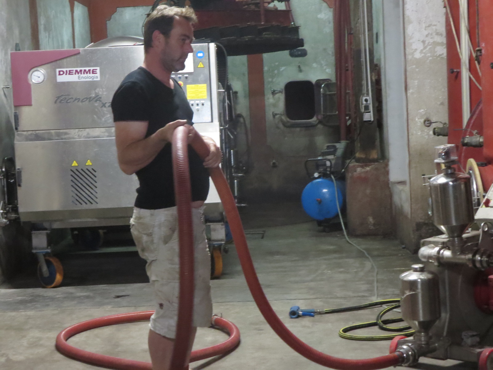 Then preparations were made for Saturday as this would be a much bigger bottling, 11,500 bottles of Classe. Work began at 7am and ended around 6.30pm, non-stop. The team worked tirelessly even as temperatures outside reached 35c. Even after all the bottling there was work still to do. Everything had to be cleaned thoroughly, the bottling line, the tank where the wine developed the pump, everything. Hygiene is essential in all winemaking but especially when using no sulphites.