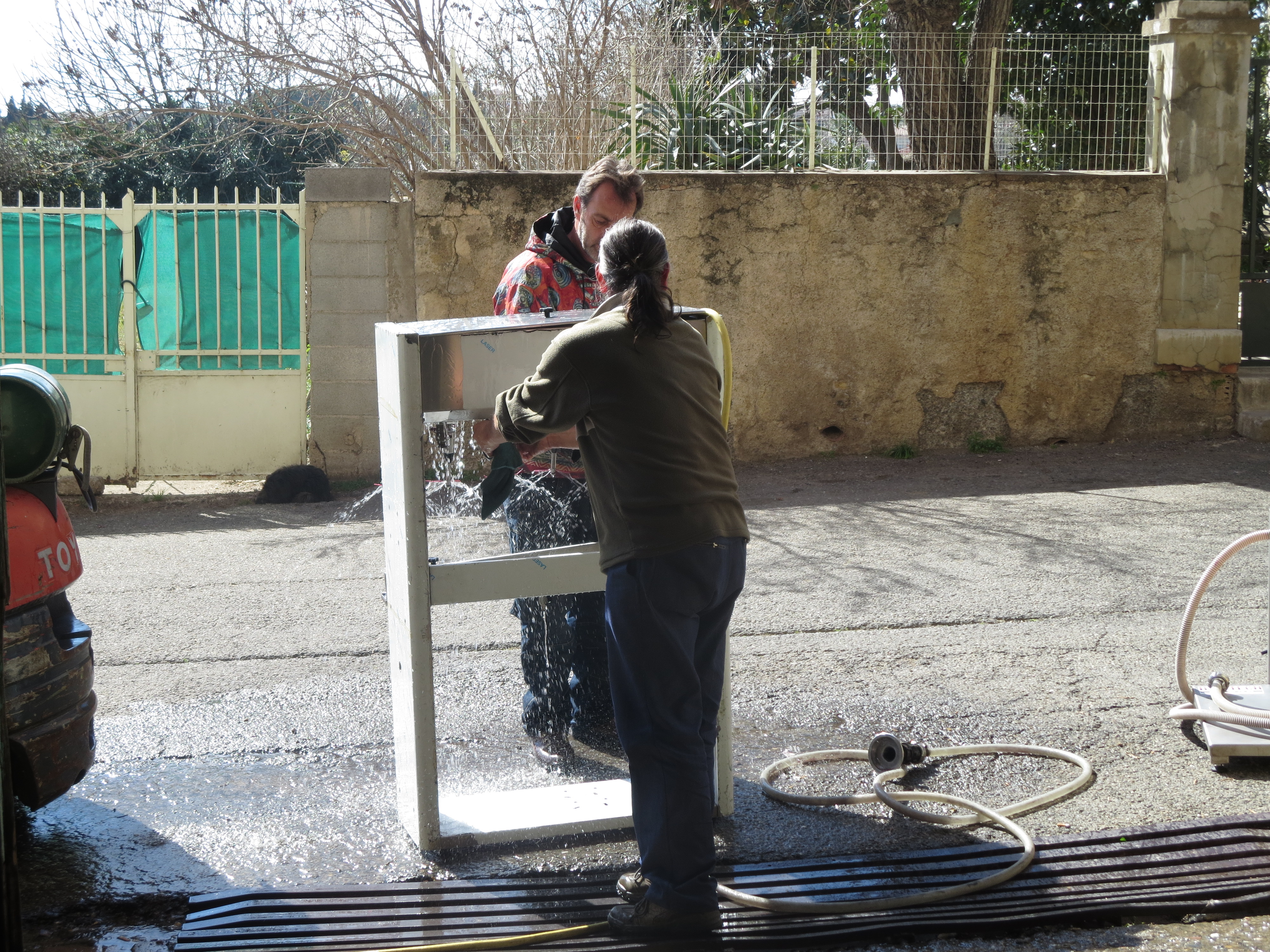 In the afternoon it was back to the main bottling line, helped by Catherine, for the Syrah cuvée and the new white wine from Peilhan vineyard, made from Carignan Blanc and Grenache Gris. The Syrah is lovely, I remember during the vendanges that the tank caused some of us some concern but Jeff always believed in it and …. he was right. Lovely dark fruits, fresh, mineral and long – almost as good as La Vigne Haute which is praise indeed.