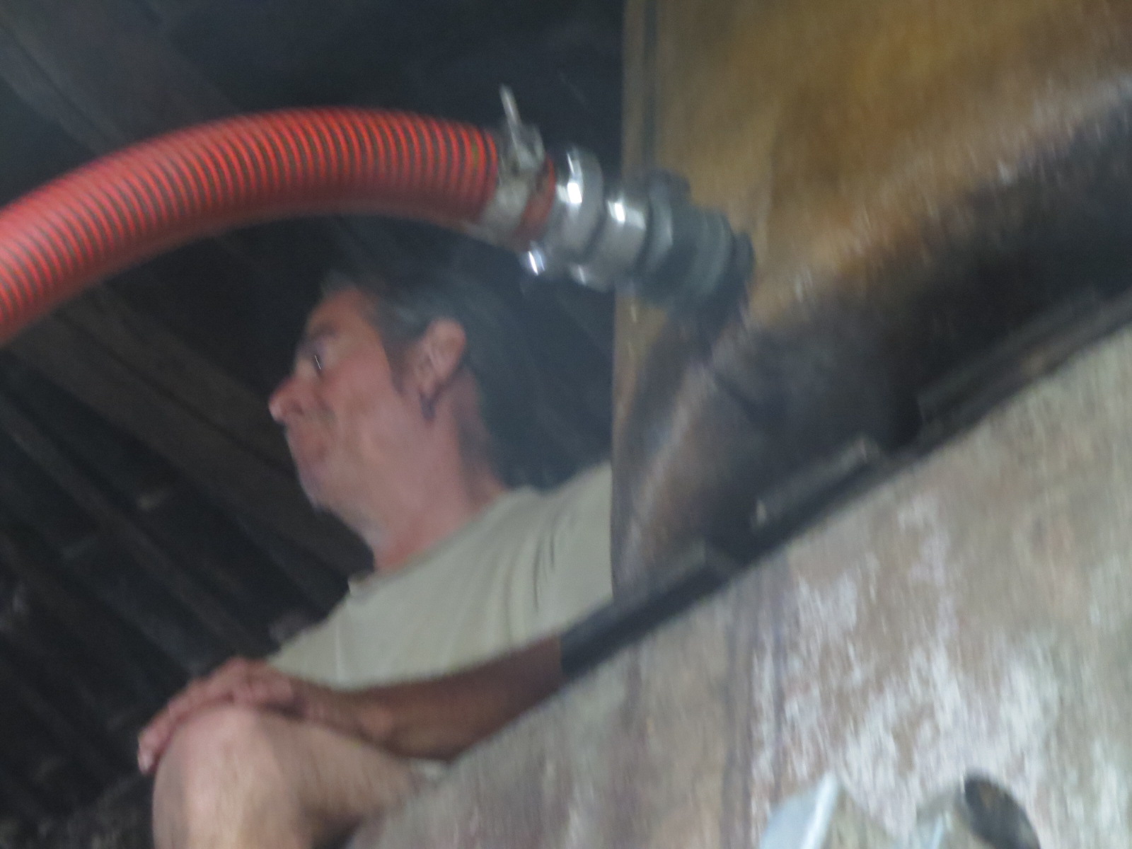 We had a relaxed lunch in the cellar, cheese, canned fish and charcuterie, the latter for Jeff, Michel and Julien. Naturally a few bottles were opened for quality control!