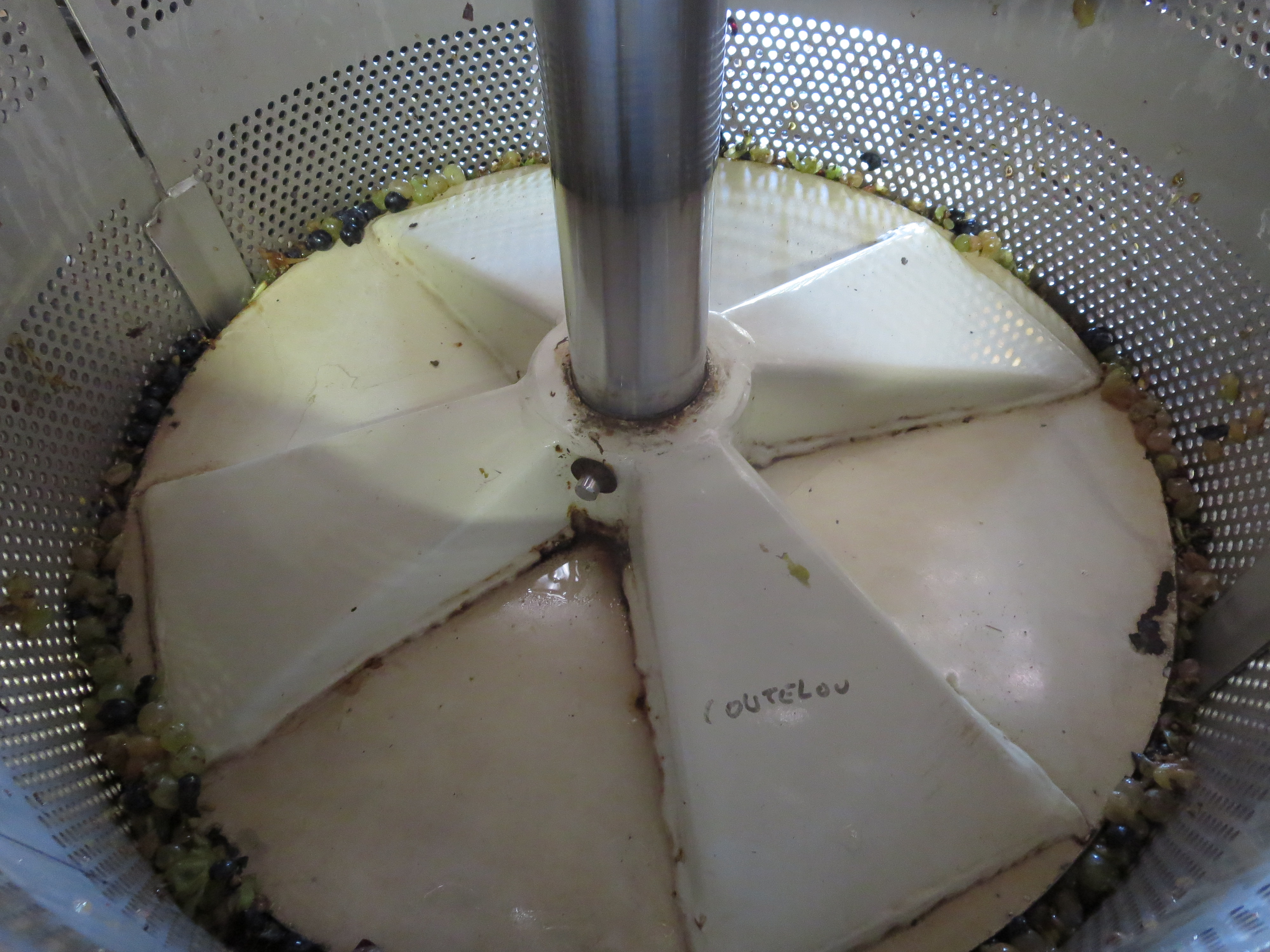 In the afternoon it was time to bring in the Grenache of La Garrigue. I identified this as the best parcel of the vintage in my first blog of this year’s vendanges, the grapes were of very high quality. You might recall that apparently this was hard hit last year and it was as if nature was offering compensation. The quality brought a smile to Jeff’s face and raised the morale of the whole team. The grapes went through the égraineur (which separates each berry not just the whole bunch like the égrappoir), and the juice already tasted especially good, confirmed by the technical analyses.
