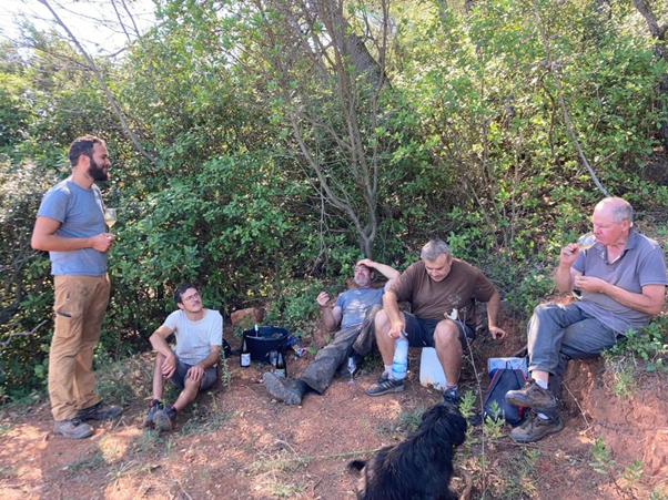 It was hard work but rewarding for many reasons. It is good to see a vineyard developing with its promise for the future, especially this one as it will mean a lot to my dear friend in years to come. The views over the St Chinian hills were a treat and the camaraderie was, as ever, fulfilling – sharing lunch and wine whilst looking out over our work and the scenery with great people. Living in the moment but also looking to the future.