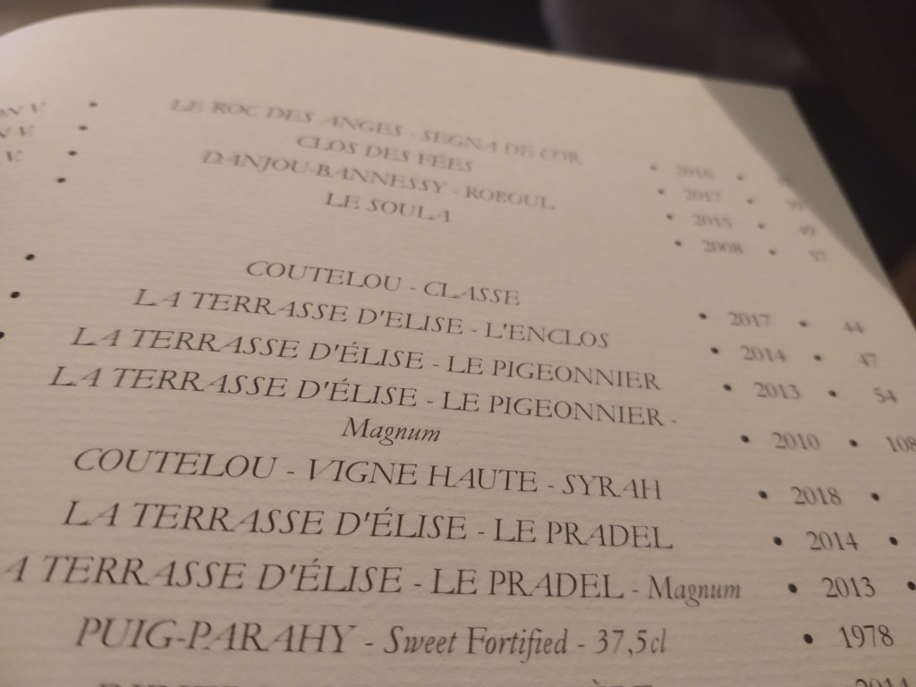 One chance discovery was Compagnie des Vins Surnaturels in Neal’s Yard. I called in to get a light lunch and found an interesting wine list including, to my surprise, more Coutelou wines. There was also a fun listing by the glass where you taste blind and if you guess it right then you get a bottle for free. Nice idea, I failed miserably to identify my least favourite grape Cabernet Franc. A group of sommeliers arrived on their day off and if they choose it, then that should be a recommendation too.