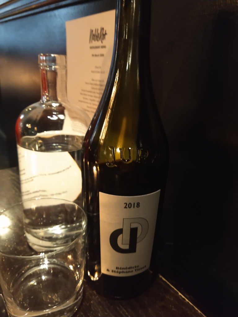 Continuing the Jura theme I enjoyed two further wines at Noble Rot. Macvin is a style of wine where marc (distilled lees) is added to grapes to stop their fermentation at around 18% alcohol. The resulting drink is similar to Pineau des Charentes, this had a nutty finish after dried fruit flavours and a little alcohol heat. Unusual but very enjoyable.