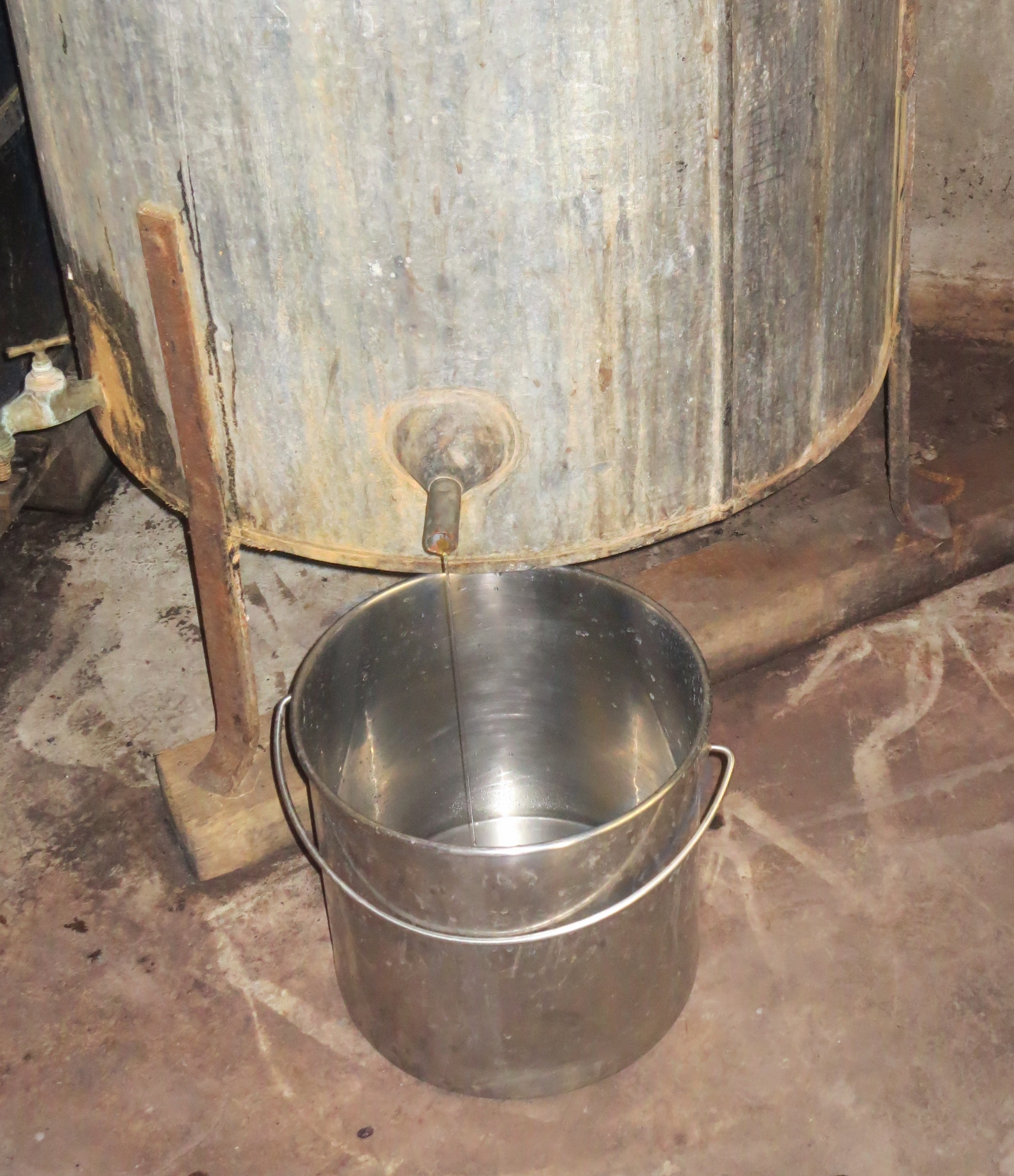 In the afternoon we used the marc from the Grenache Gris. It was passed back through the destemmer and the grapes placed into a container with a little bit of water. This will make a piquette wine, a light quaffing wine. I was surprised to read a couple of days later that piquette wines are the new trend in the USA. It is something of a tradition in Puimisson. On Wednesday the piquette was already fermenting when we looked in the container.