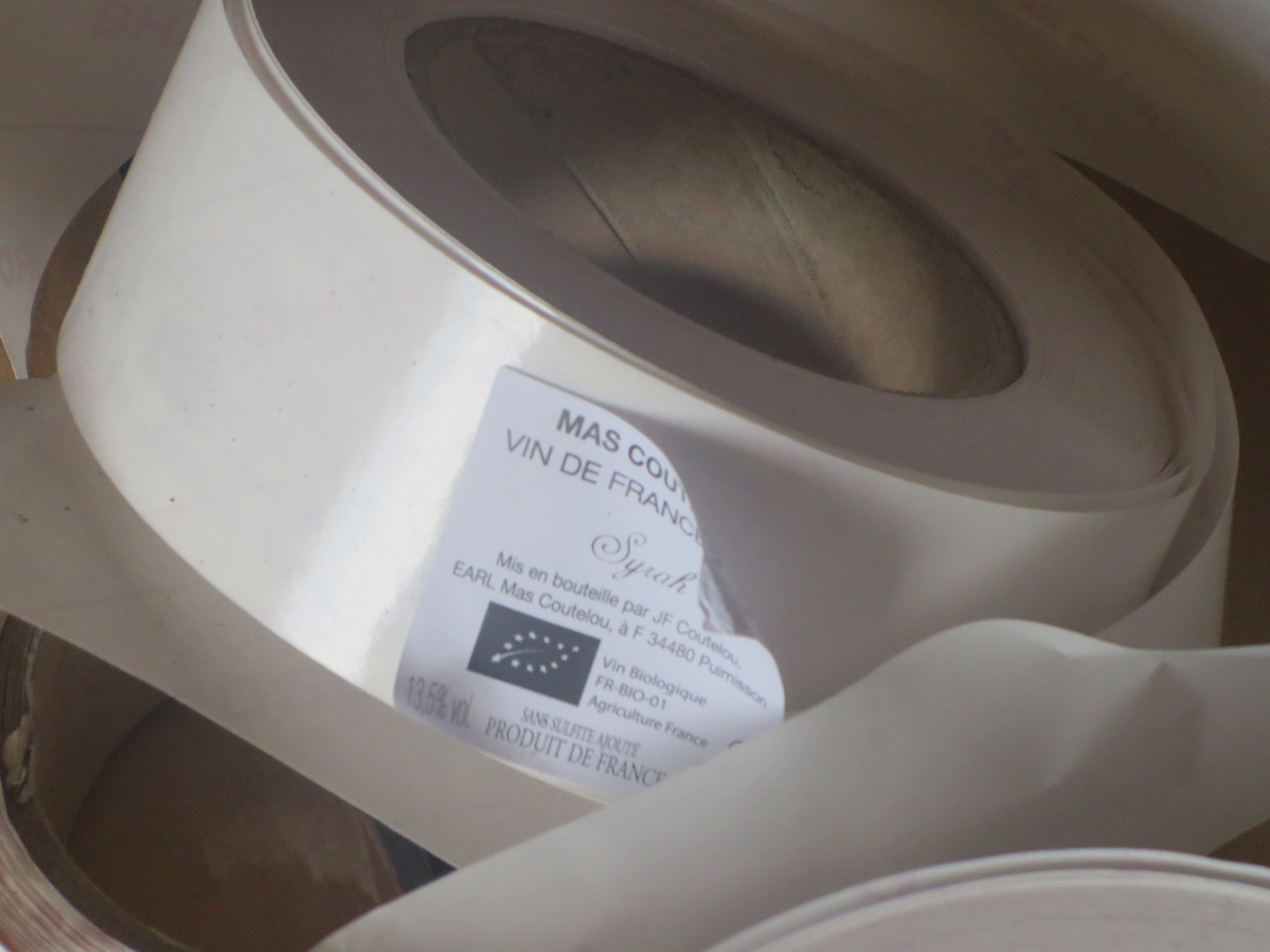 Jeff has also been receiving plenty of phone calls. It is now several months since wines left Puimisson to head to cavistes and merchants in France, Europe, the USA, Asia and Australia. Now stocks are low there is a demand for wines to be sent to them. Therefore, the 2014s which were bottles earlier this year are now being furnished with their labels and capsules and then packaged into boxes. Different regions, eg the EU, UK and USA, all have different requirements even for this packaging so even this job is not as simple as it may seem. For more on the process and a video I took last year see here.