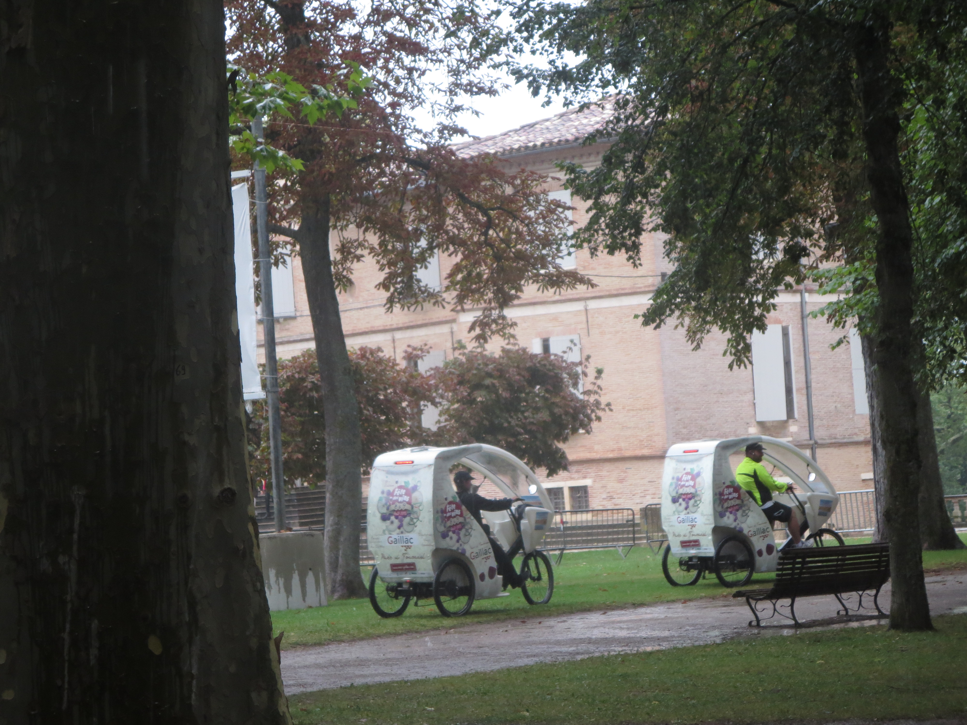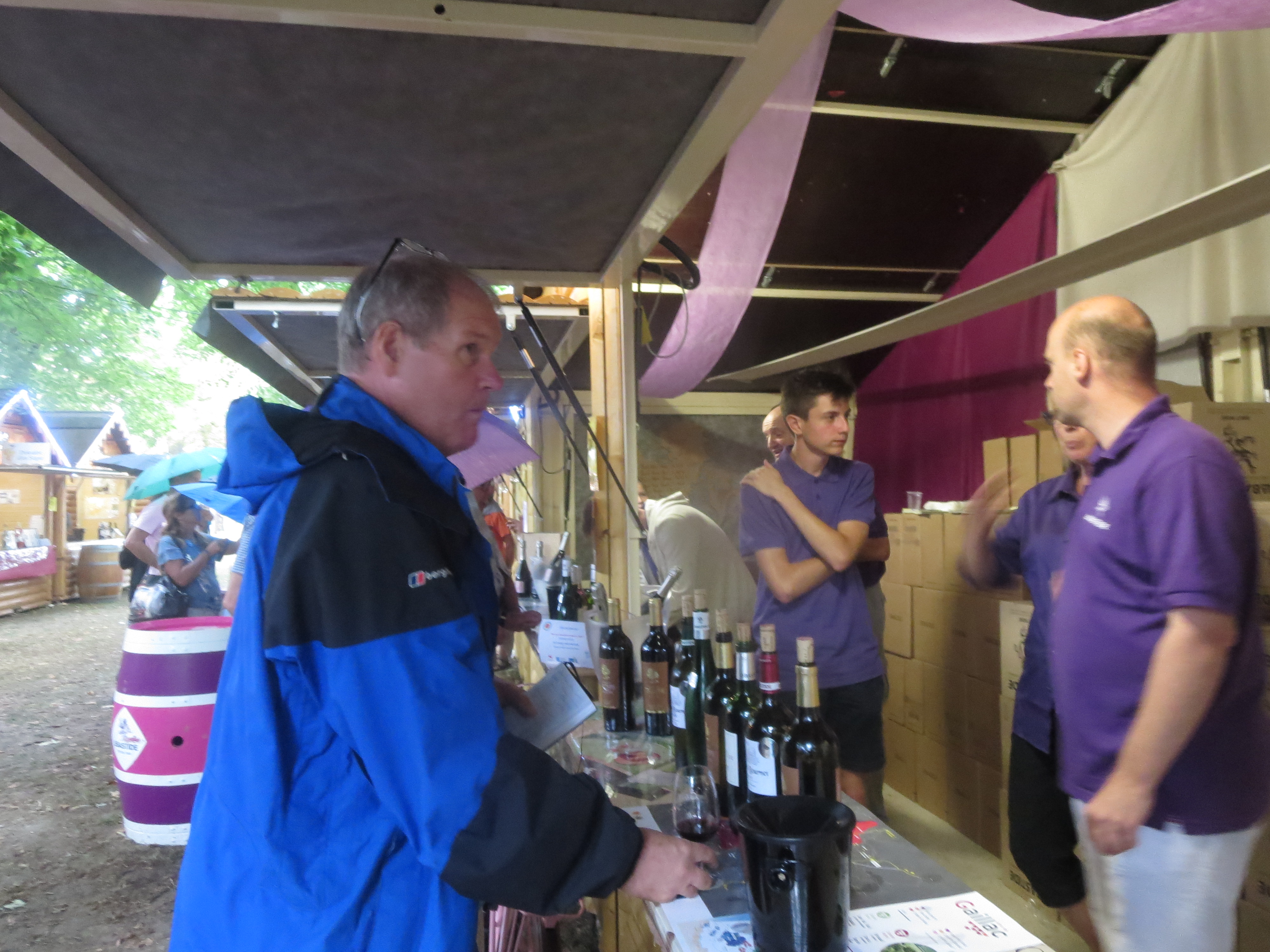 Anyway the weather failed to spoil the event which was well organised with plenty of food tents, handy cycle powered rickshaws to carry wine back to your car, (fortunately powered by someone else!) and wooden lodges for each producer with handy panels to provide a roof which was, mainly, waterproof. Certainly a step on from the tents 20 years ago. Plus free delivery within France if you bought 24 bottles, a very helpful gesture.