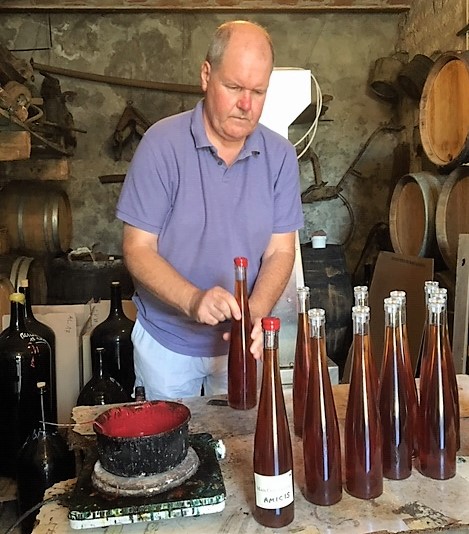 Jeff has assembled a big team of assistants, as he told me it’s rather ironic that should be the case in this vintage. Firstly there’s Matteo, from Rome, who has been in Puimisson with Jeff since January. He helped to prune the vines this year, together with Englishman Matt who I sadly did not get to meet. Matteo, therefore, knows the vines and vineyards well and leads the team equallly well. Steeve is a friend who has visited Jeff many times and done harvest before with us. From the Jura region, Steeve has decided to change career and is spending the next few months with Jeff to learn more about his new vocation. Gilles, an ebullient and cheerful local man, has been working with Jeff for some time, happy amongst the vines after having his own vineyards for many years. Louis is from Narbonne, did harvest here last year and has returned. He is hard working, cheerful and speaks excellent English. Boris is another local who comes every year to help with vendanges, a lovely guy who works with nature conservation in his full time job.