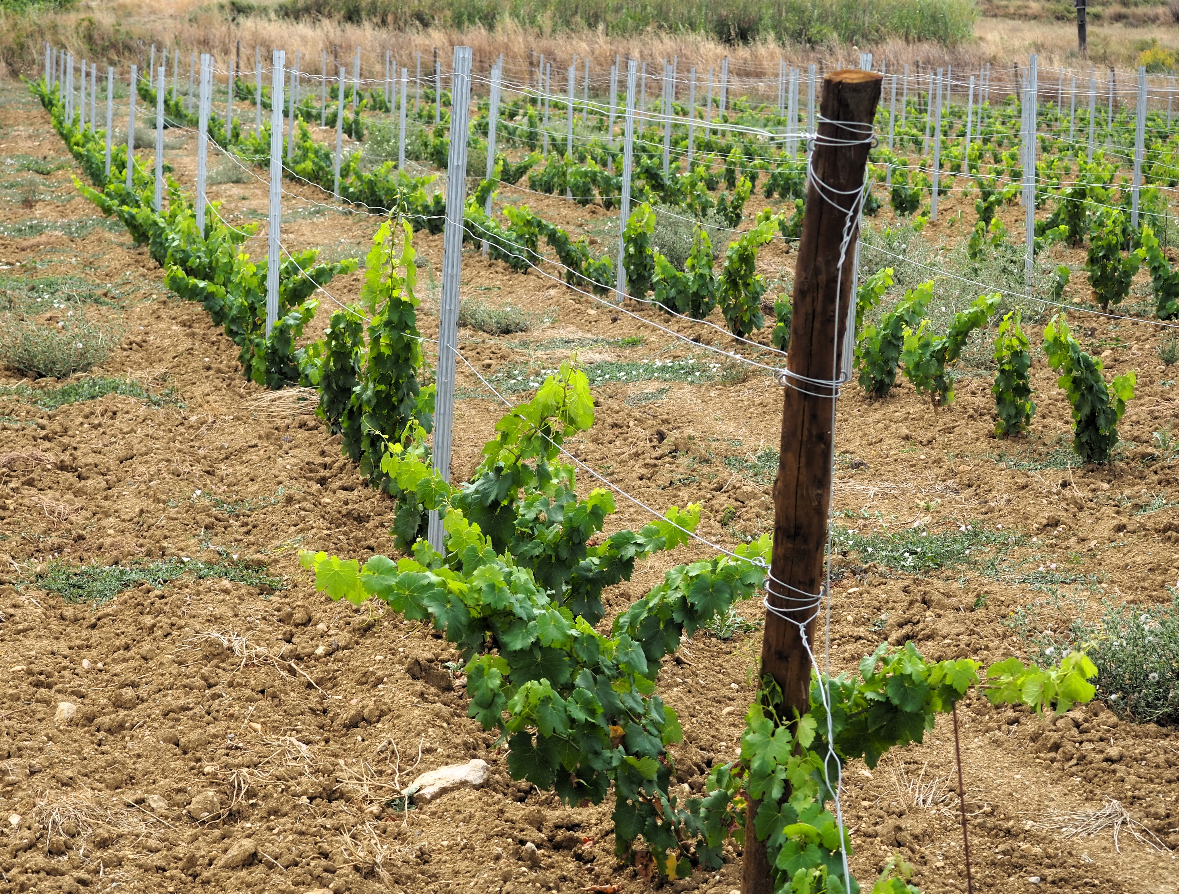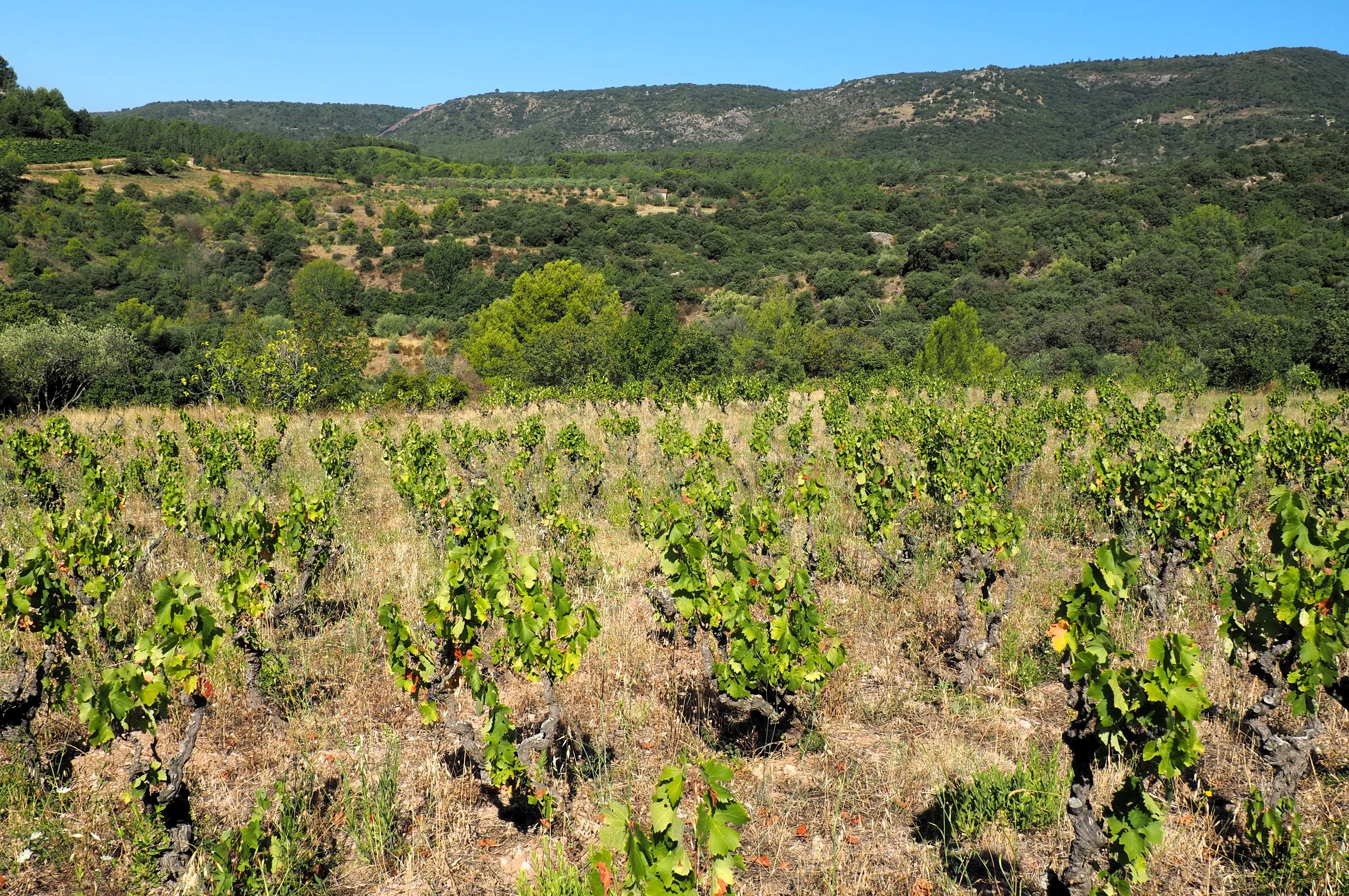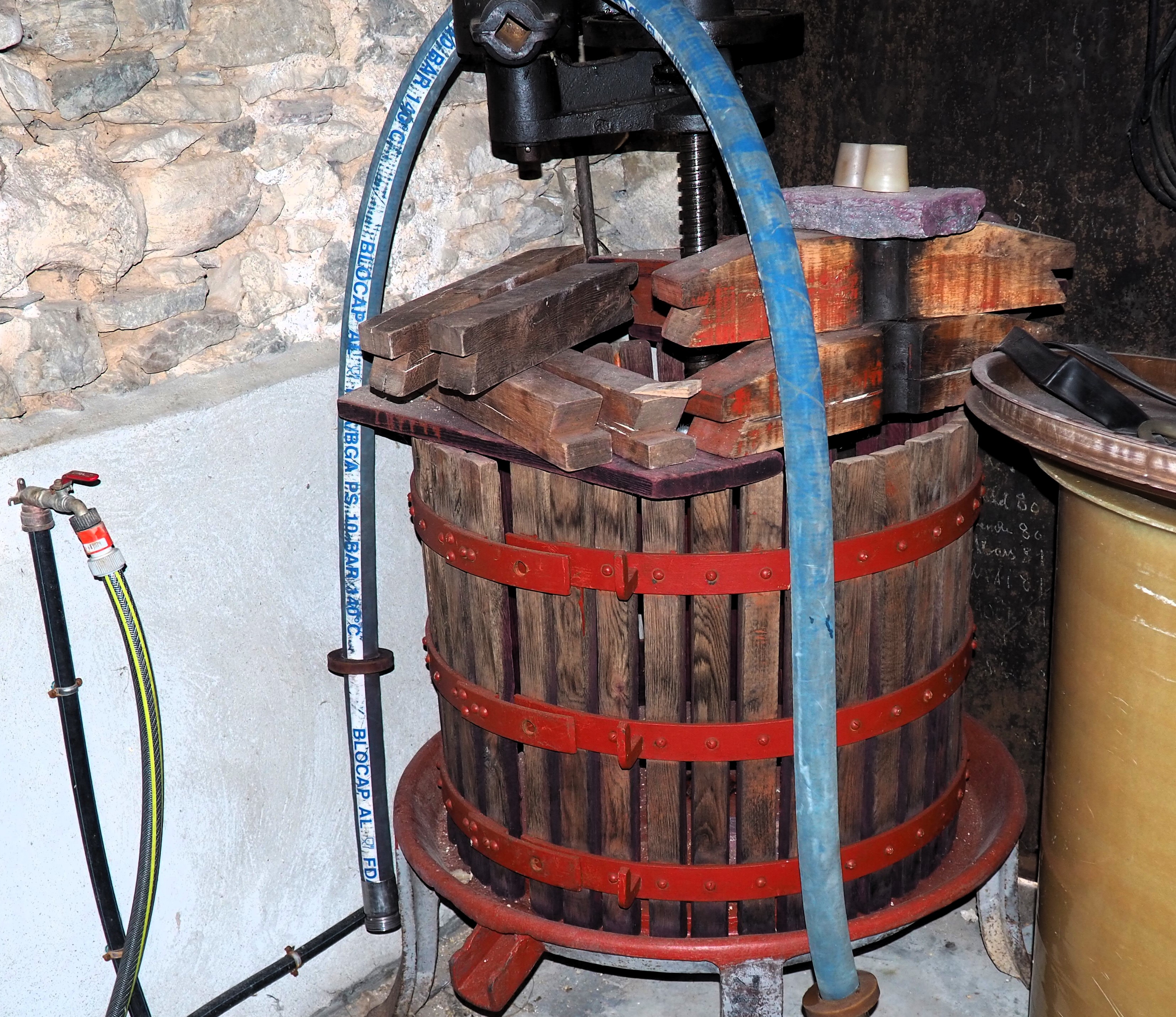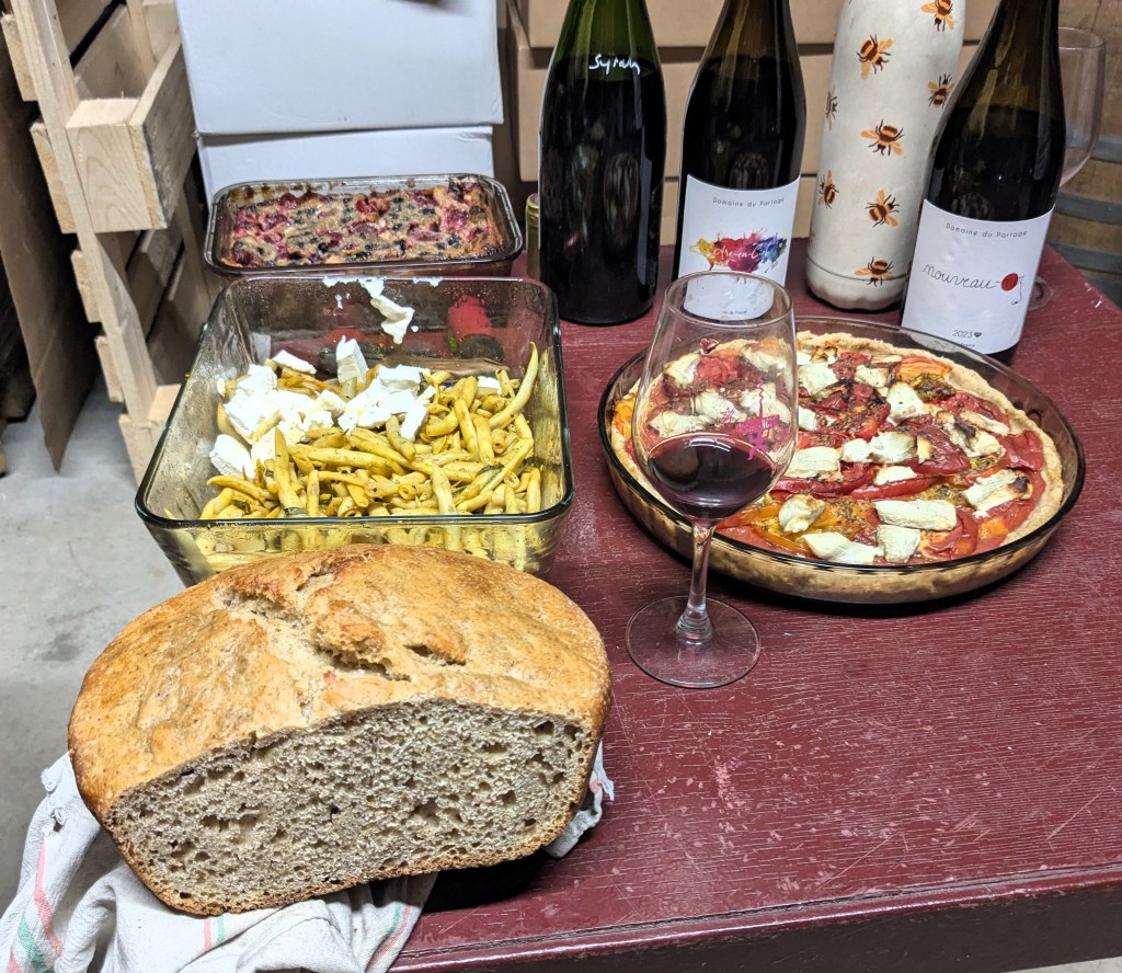 In the vines Jeff is all too aware of having to adapt his vineyards to cope with climate change / chaos. The frost of 2021, drought every year from 2022 have brought weakened vines, raised levels of vine mortality and low yields. To face this Jeff has planted root stock and grape varieties more adapted to the new reality. The big new parcel at Peilhan, for example, has been planted with grapes such as Malvasia de Sitges, Parellada and Llardoner. It looks in magnificent shape. Unfortunately in the same vineyard the hedge has been burned down for a third time. Watering and replanting will hopefully bring a renewal of life and a defeat of vandalism and stupidity.
