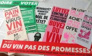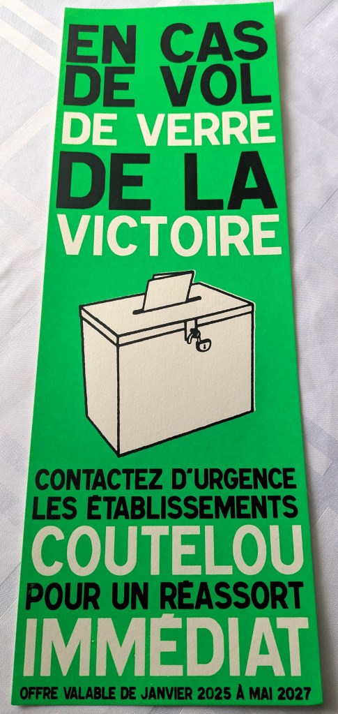 The start of each year brings Jeff Coutelou’s carte des voeux, with its satirical look at events in the world together with a summary of the previous year and the wines that will emerge from it. The poster this time features the chaotic political scene in France after last year’s elections and changes of government, neatly combining it with a call to restock with some of the best natural wines of the world, his of course.
