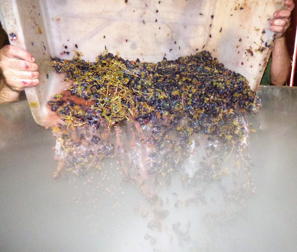 Some serious hard work. A lot of grapes came through the cellars in these two days and we worked longer hours than usual. I can almost hear regular readers thinking, “Hang on, you said there were fewer grapes this year!” That is, sadly, still the case. Whereas in previous years all the grapes that came through in similar quantities might have been from one or two parcels this time it was grapes from several different parcels. All the grapes from those parcels. What might have taken three or four days was done in two.