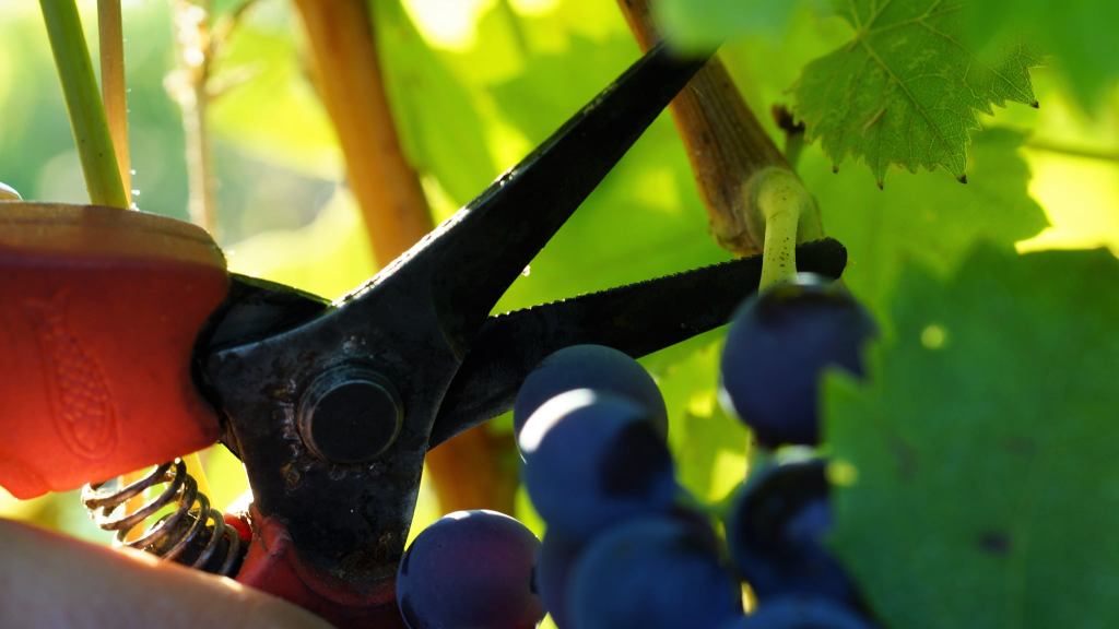 Lovely bunch of Grenache which Julien and Élise help to sort