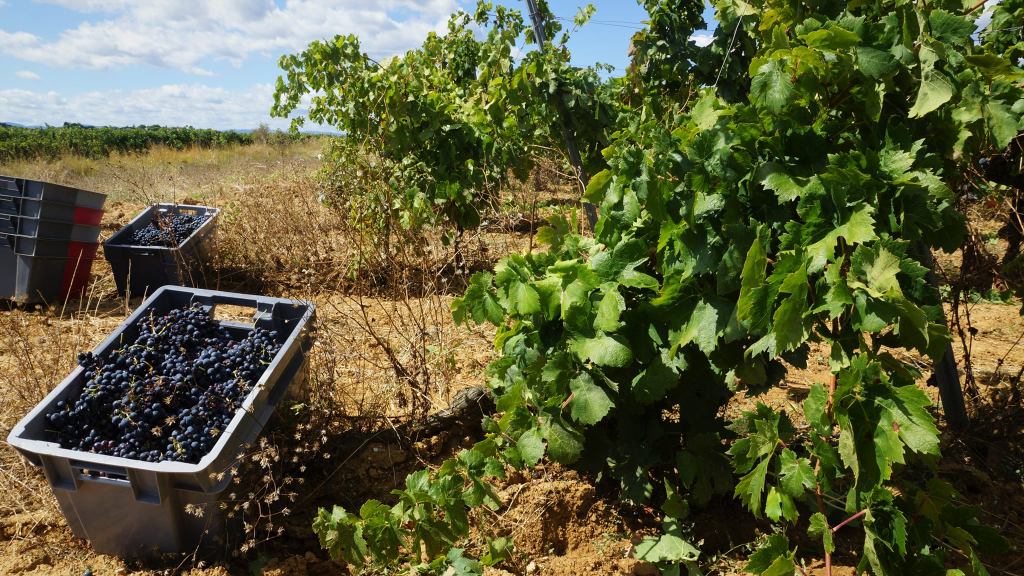 We picked around 37 cases of Riveyrenc and, I’m happy to report, the grapes were much juicier than anything we had picked so far. It was a joy to see juice in the cases as we sorted them back at the cellar, up to now the cases have been very dry. The Terret Noir and Blanc were rather less generous in quantity but were added to boost the quantity. That these vines are producing such good fruit so young promises well for the future.