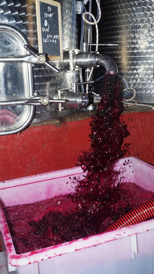 Lovely, fermenting juice left whilst the lower juice and lees are extracted right