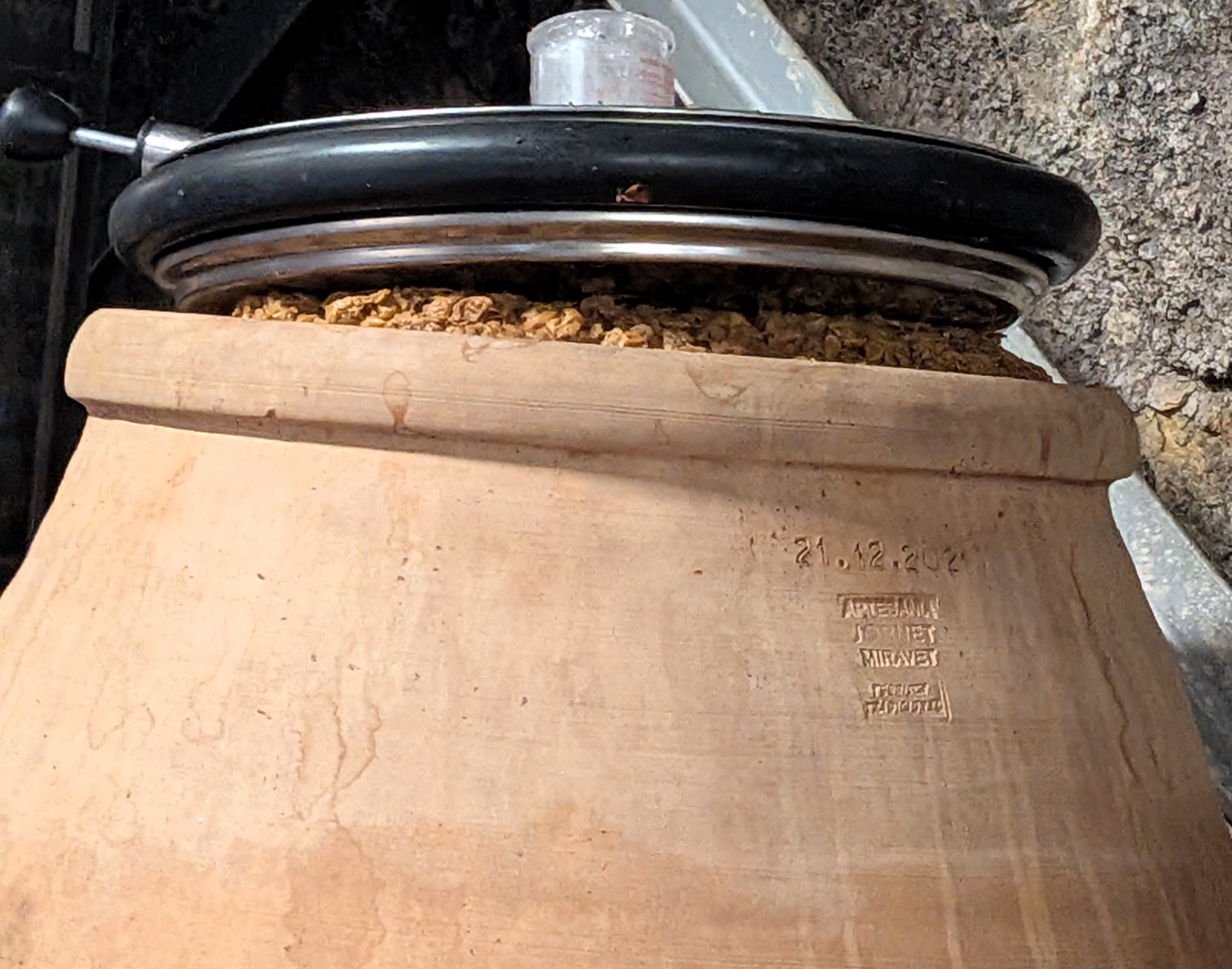 The other amphora will be used for the various blanc and gris grapes (Carignan, Grenache etc) also from Peilhan.