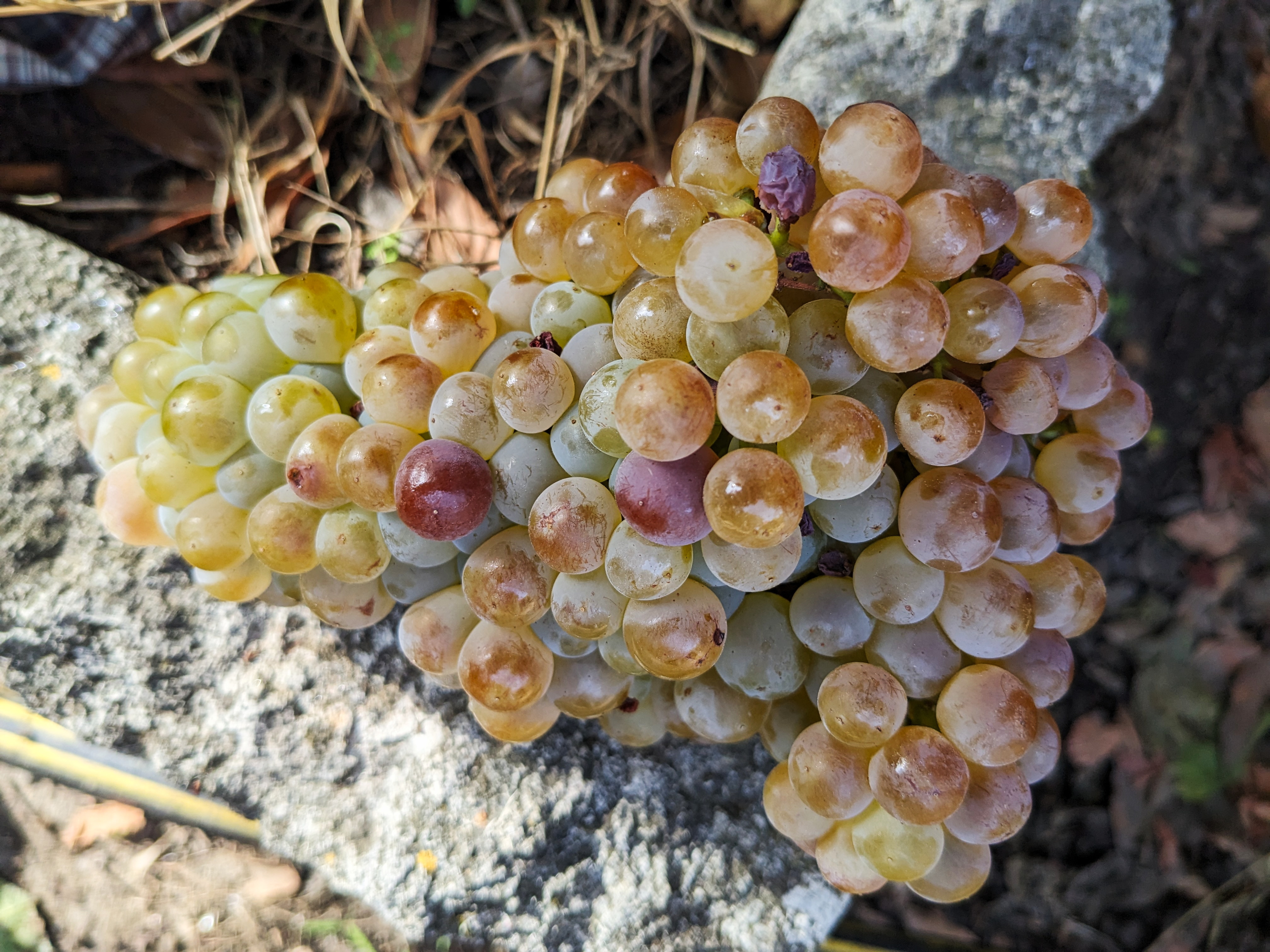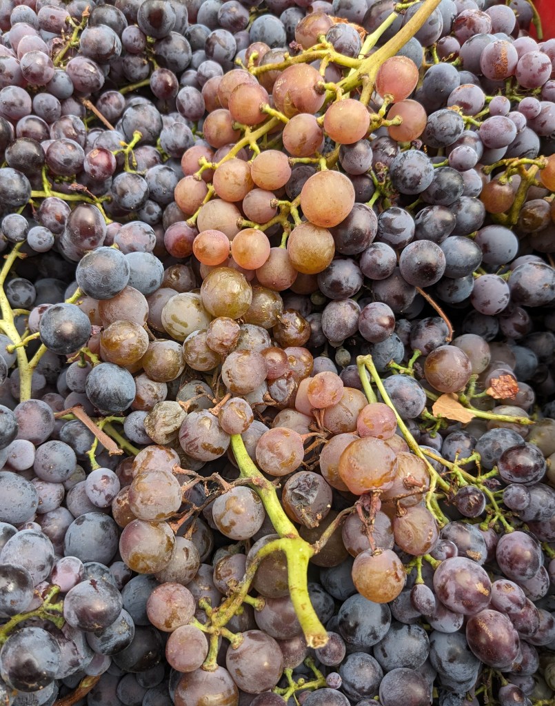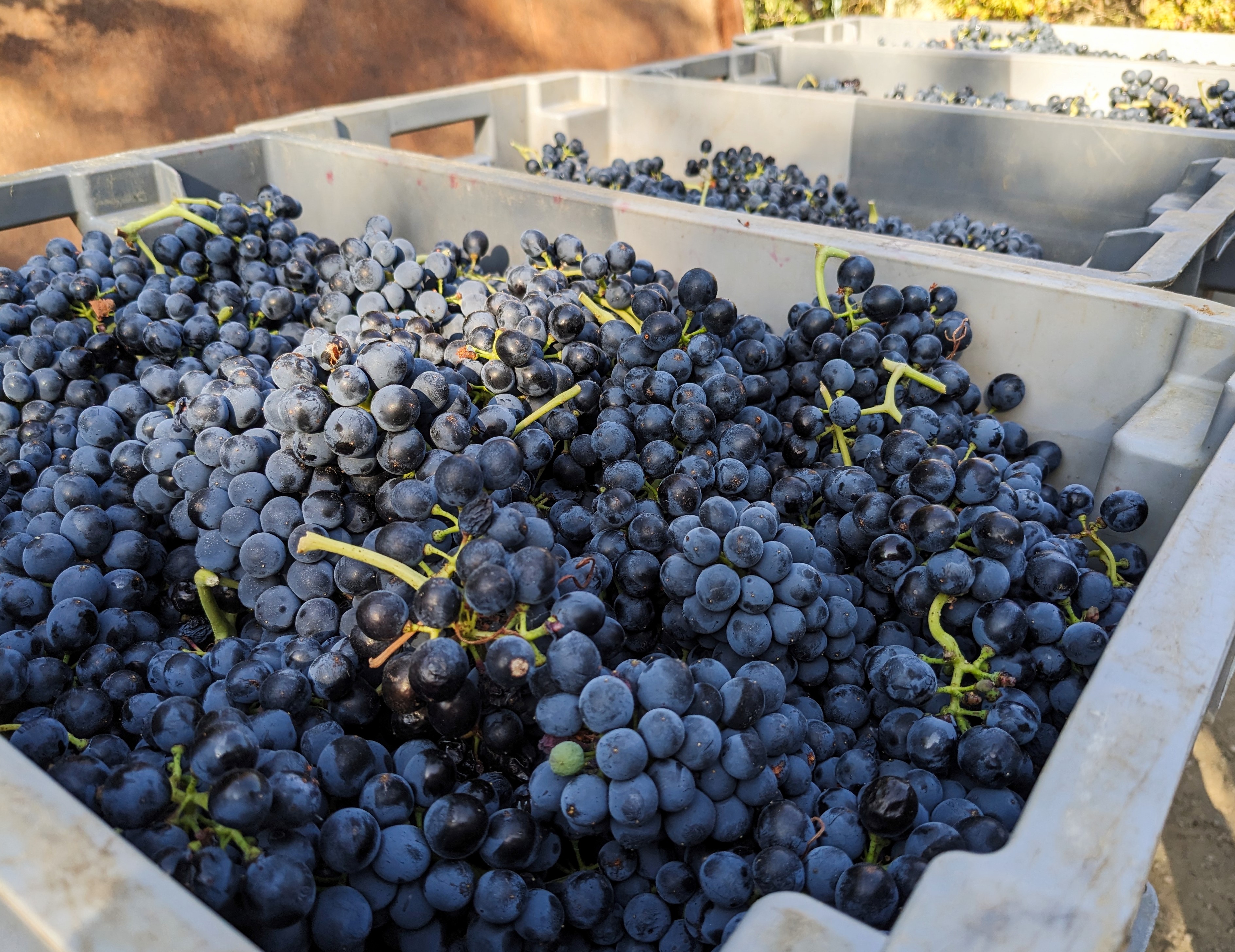 En conséquence, malgré la bonne santé générale de la plupart des Mourvèdre, il a fallu procéder à un tri plus poussé que pour tout autre raisin pendant les vendanges. Je posterai un article détaillant ma méthode de tri des grappes. Heureusement, le Mourvèdre a montré des niveaux élevés d’azote dans l’analyse, ce qui suggère qu’il fermentera bien et pourra servir de levain pour les cuves plus lentes. À 15 h 30, le Mourvèdre était traité, et avec l’abondance de cueilleurs, il a été décidé de s’attaquer à la dernière parcelle de raisin pour achever les vendanges.