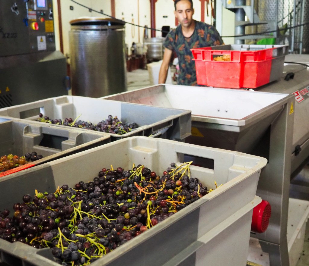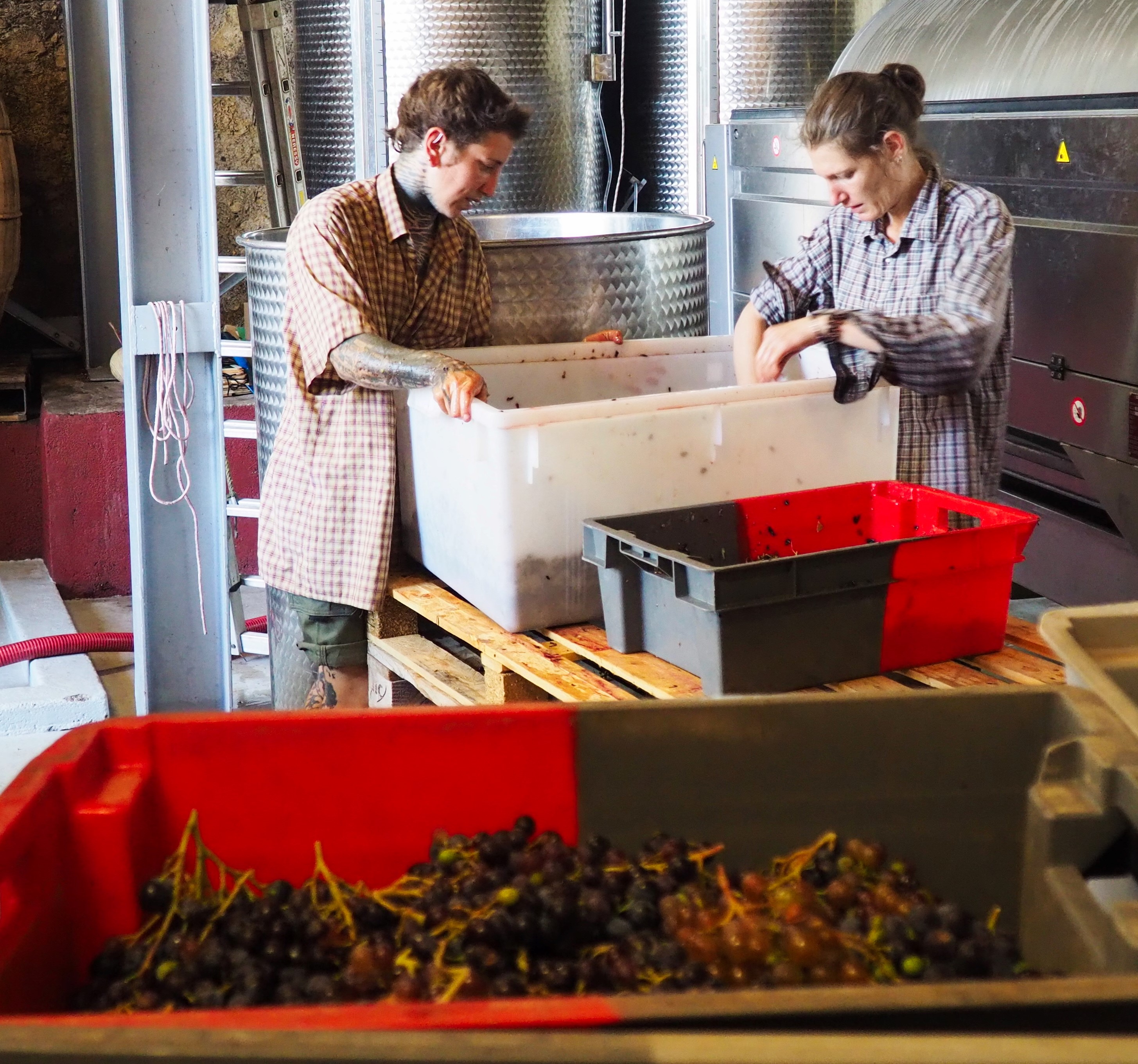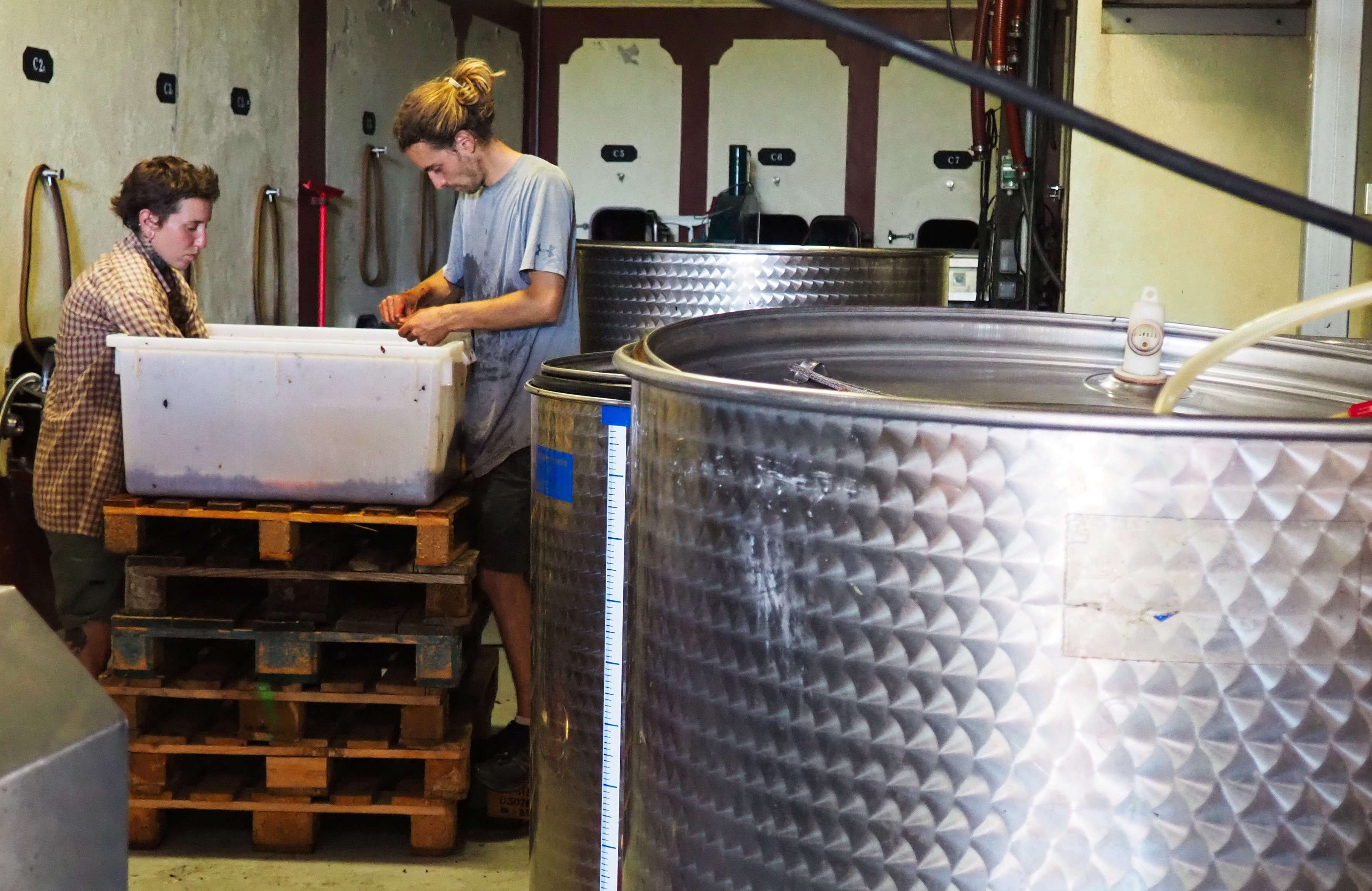 La première récolte a été le Muscat d’Alexandrie du vignoble de Peilhan, qui a eu très peu de pluie au cours des dix derniers mois. Ce raisin a été pressé et mis dans un réservoir à part. Ensuite, est venu le Morastel de la plantation de 2015 sur la terrasse de Peilhan. Celui-ci a été touché par la maladie l’année dernière et a donc eu du mal avec la sécheresse, même si d’autres vignes sur la terrasse ont été épargnées.