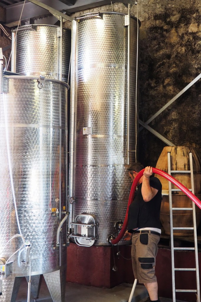 Beaucoup du travail dans la cave, il faut nettoyer tout, tout le temps et le Morastel a besoin de la pigeage