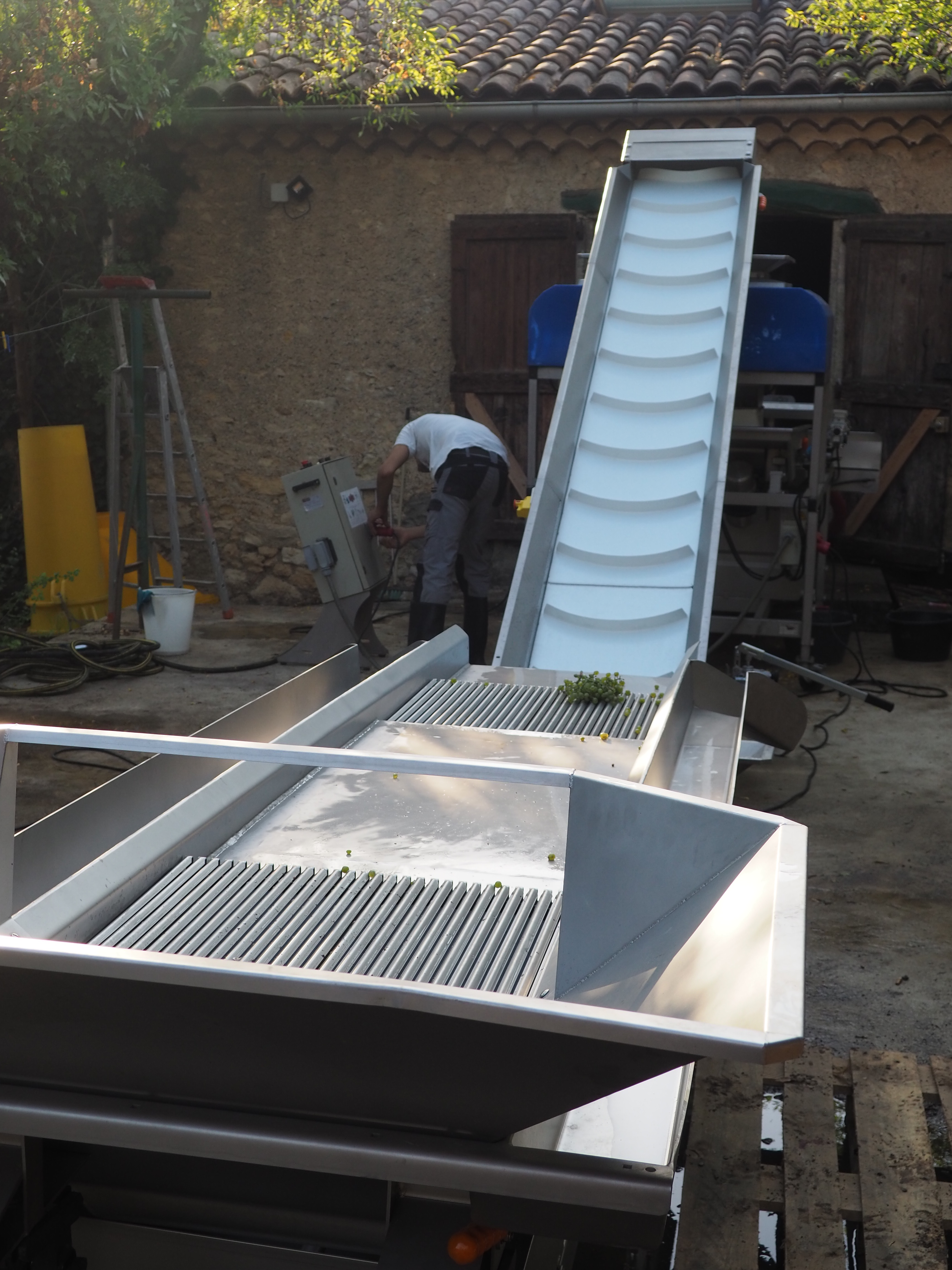 Le jeudi, encore plus de Syrah. Cette fois-ci de Segrairals et de La Garrigue, les raisins de ce dernier étant utilisés pour faire La Vigne Haute dans les meilleures années. Malheureusement, ce n’est pas l’une de ces années-là pour le Syrah. Une nouvelle table de tri de remplacement était maintenant arrivée, une version plus ancienne mais toujours utile. Les raisins de La Garrigue n’atteignaient peut-être pas le standard de La Vigne Haute, mais ils étaient de meilleure qualité, plus juteux et en bonne santé.